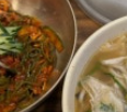 칼국수에 마늘향 가득한 육수, 고기 가득한 만두, 그리고 밥까지 주는 혜자 구성.