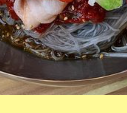 고명으로 올라가는 회(주로 명태회)는 식욕을 자극하는 주요 감칠맛의 핵심 포인트.